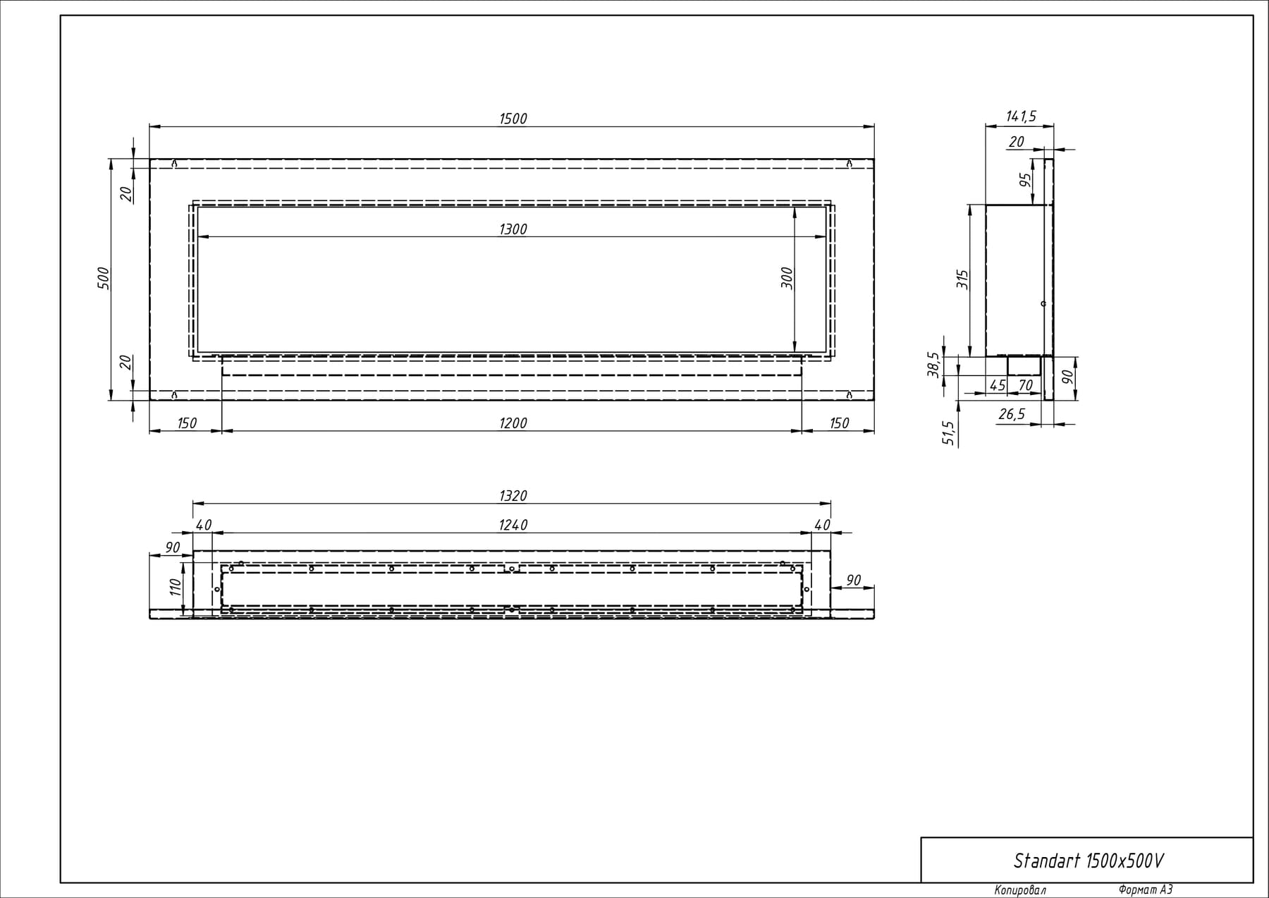 Встраиваемый биокамин «Лофт 1500V» изготовлен из стали и нержавеющей стали, окрашен термостойкой порошковой краской.