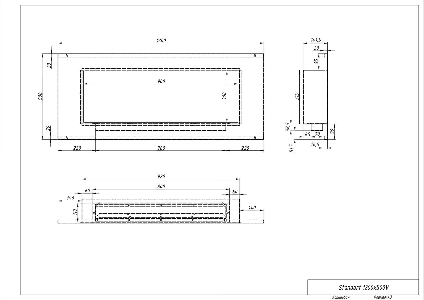 Встраиваемый биокамин «Модерн 1200V» изготовлен из стали и нержавеющей стали, окрашен термостойкой порошковой краской.