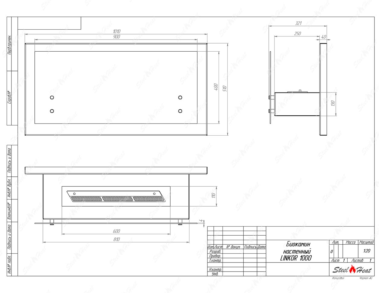 Биокамин SteelHeat LINKOR 1000 навешивается на стену из кирпича, пеноблоков, бетона и не требует специально оборудованной ниши.