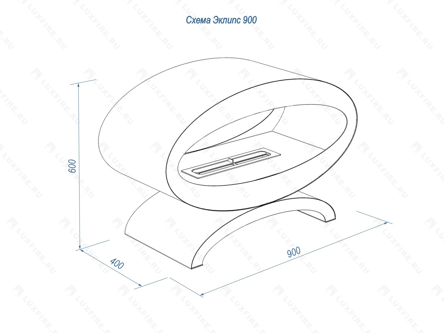 Размер биокамина (ВхШхГ; мм): 600х900х400.