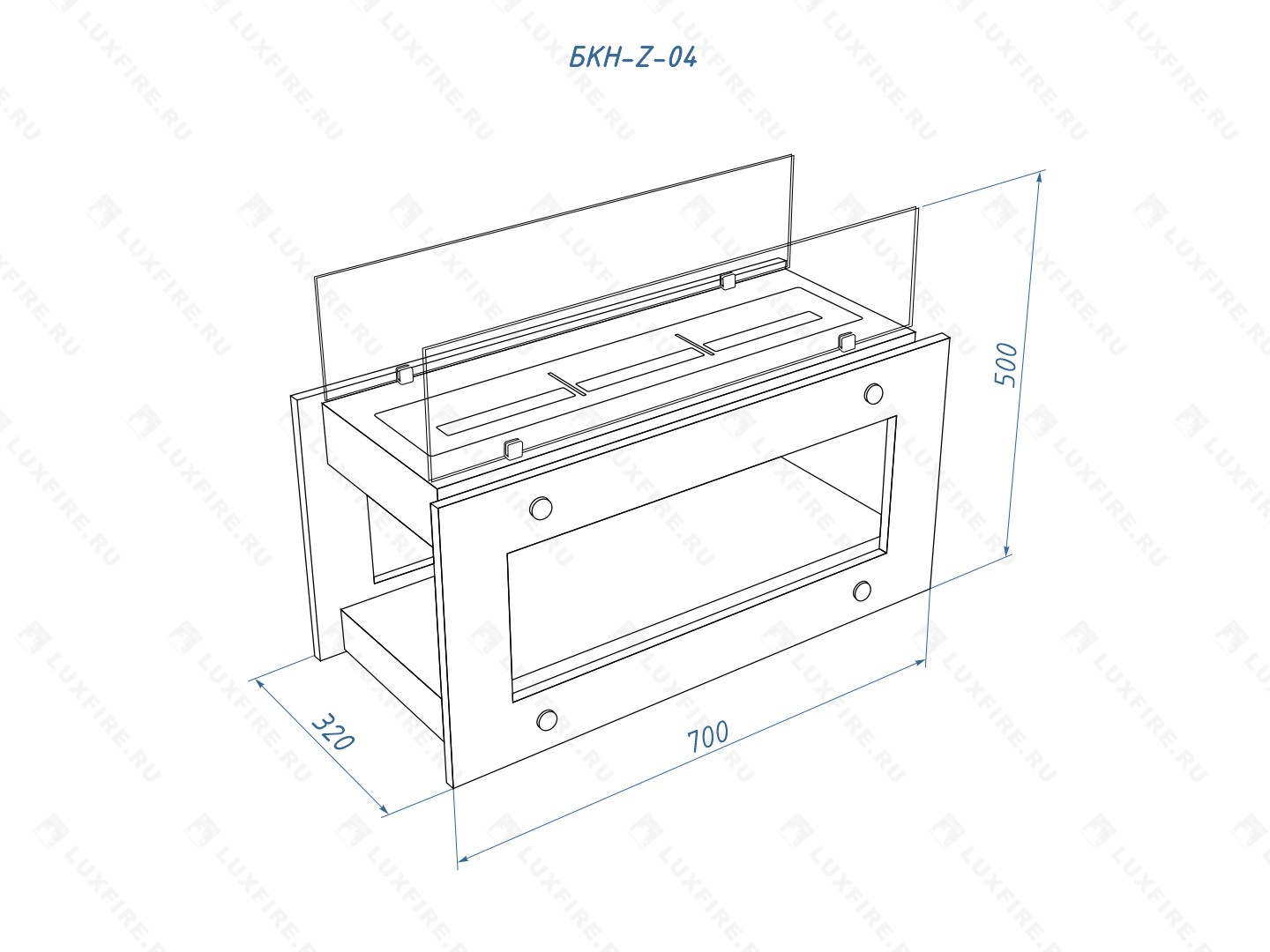 Размер биокамина (ВхШхГ; мм): 500х700х320.