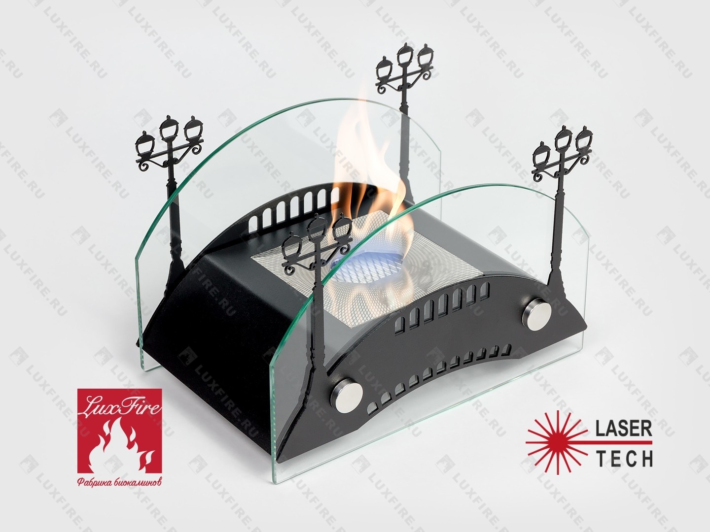 Представляет собой биокамин, который создан по мотивам мостов дореволюционной России середины ХIX-начала XX века и состоит из металлического корпуса с топливным блоком Lux Fire 100-1 огражденным с двух сторон скругленными защитными стеклами на дистанционных держателях и декоративными металлическими накладками в виде «Фонарей»