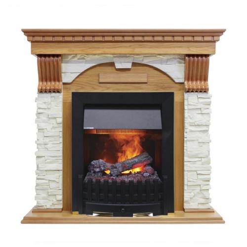 Каминокомплект «Dublin» от производителя Dimplex оборудован современным паровым очагом «Danville Black», отличающимся реализацией в конструкции системы имитации пламени Opti-Myst. В изделии сочетается классический общий вид и современные технологии, используемые также и при изготовлении материалов портала. Сочетание камня и дерева, а также небольшие габариты изделия позволяют сделать его практически универсальным с точки зрения установки в помещениях различной площади.
