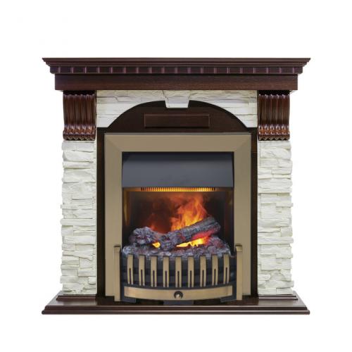 Каминокомплект «Dublin», представленный производителем Dimplex, оборудован современным паровым очагом «Danville Antique Brass». Классическая конструкция портала подчеркнута цветом античного золота очага. А максимально уютная атмосфера достигается за счет работы системы имитации реалистичного пламени Opti-Myst. Она реализована в конструкции очага. Благодаря компактным размерам портала установка электрокамина допустима даже в небольших по площади помещениях.