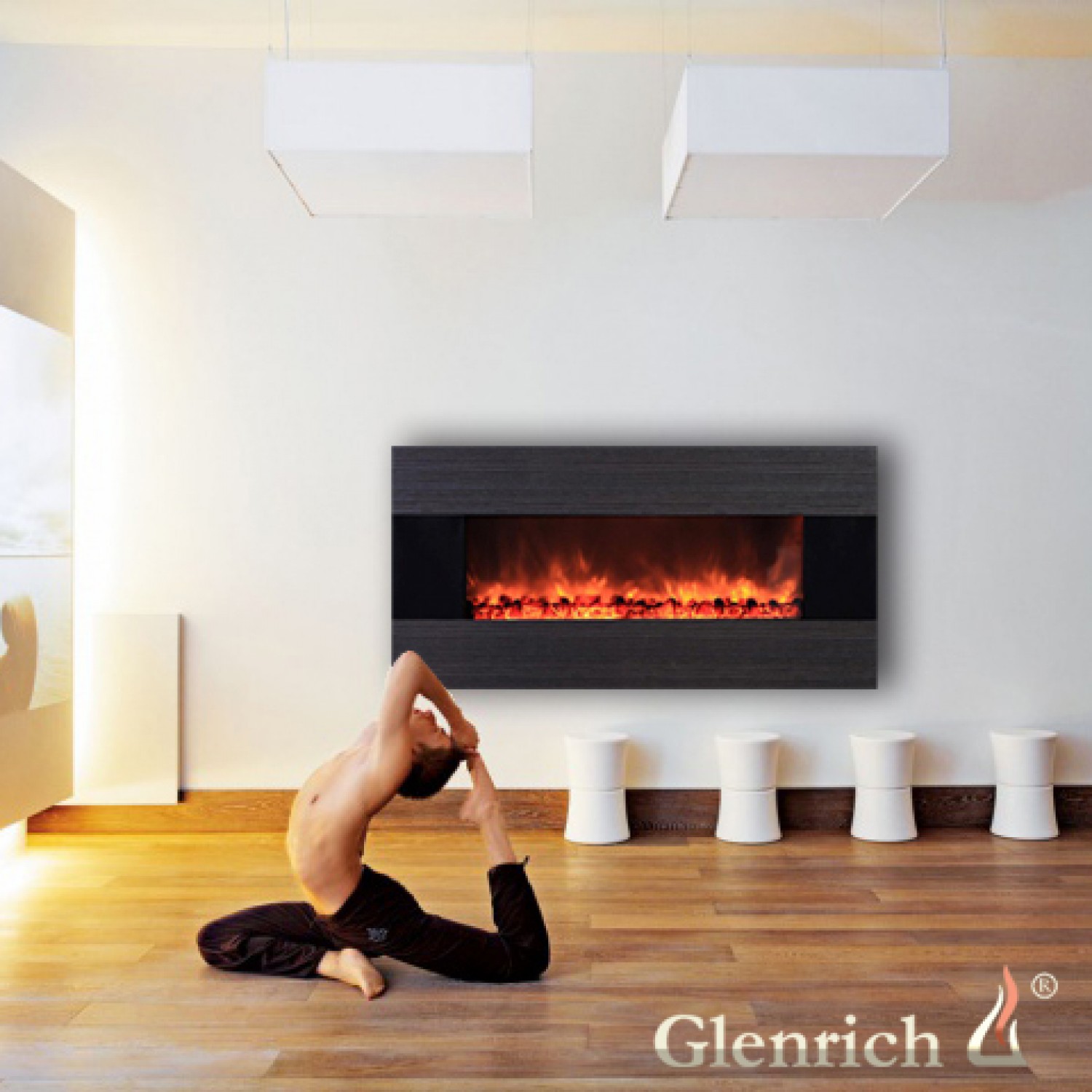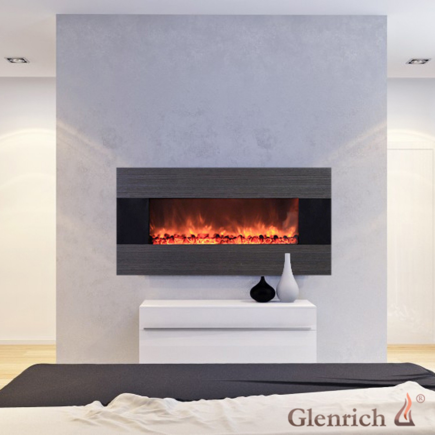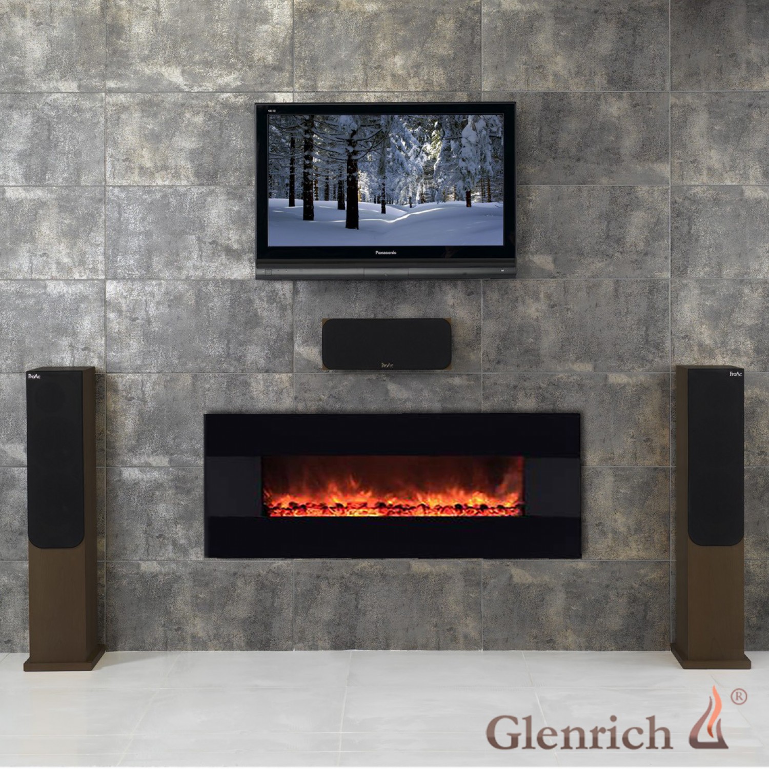 Настенный электрокамин, яркий эффект горения углей, встроенная аудиосистема, воспроизводит музыку с флэш, IPod.